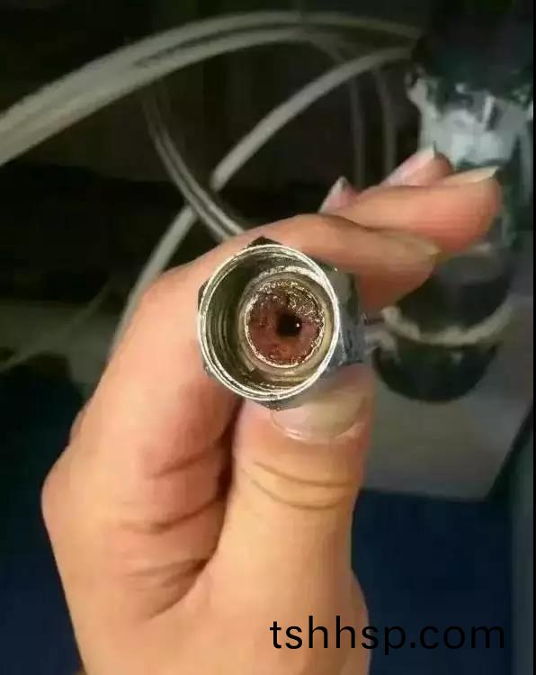 白(bai)色(se)的濾芯錶(biao)麵(mian)完全(quan)變(bian)成了咖啡色——